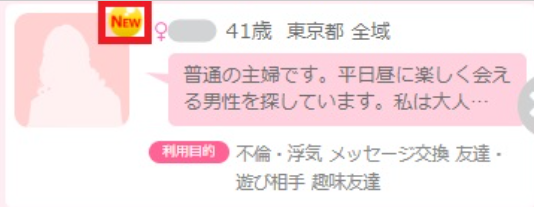 ほとんどの出会い系サイトには、「登録日」や「利用開始からの日数」によって、新人女性が見分けやすくなるマークやラベルがあります。
