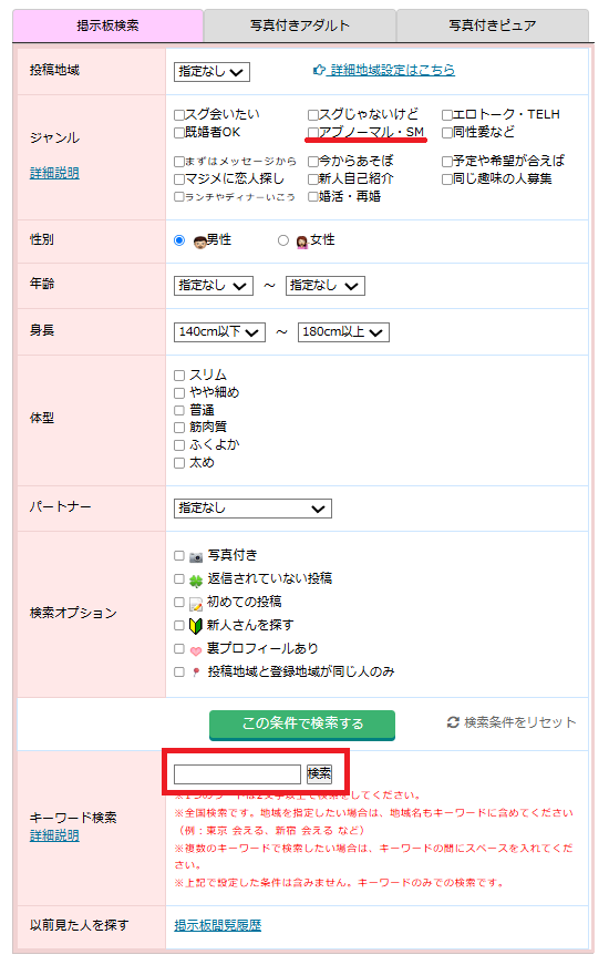 プロフ検索に「SMパートナー」「アブノーマル」項目がある
