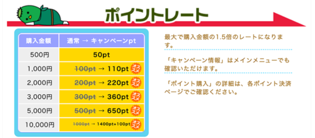 この期間中にポイントを購入すれば、通常よりもお得にポイントを手に入れることができます。