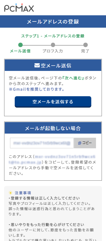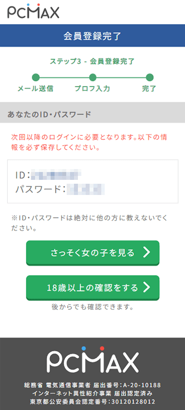 ここでは大手優良出会い系サイトのPCMAXを例に登録方法を解説していきます。